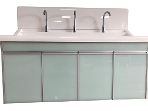 高分子洗手池材质特点:采用高分子材料一次吸塑成型,出水方式有:感应式、膝控式、脚踏式和手动开关,一台洗手池可客户要求选择单一出水方式或多种出水方式。洗手池分高背和低背,高背总高度1800mm,配有美容镜,照明灯,皂液器,可按客户要求配置烘手器和热水器。低背板无配置。