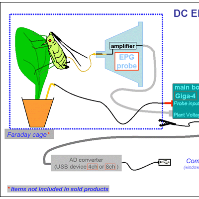用途:昆虫在剌吸过程中,会产生非常小的电势差,这种电势差通过信号放大器放大至能显示出来,昆虫从剌吸到取食过程的电势不同,会显示不同的波形,根据波形判断是在取食还是其他行为。EPG昆虫刺探电位仪基于直流的设计原则(避免了交流型号造成的干扰),保证了高分辨率。该系统可以测量同翅类昆虫和其他的刺吸式昆虫(特别适合应用于蚜虫),主要分析这类刺吸式昆虫在植物上的取食行为及植物抗虫性研究。处理方式简便,可同时允许分析8只昆虫。可通过USB转换器与电脑连接。