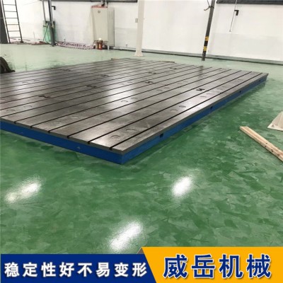 T型槽装配平台http://www.chinaweiyue.com/应用广泛、种类繁多,因为铸铁加工工艺的灵活性,铸铁平台可以做成一整块、条状拼接、带凹槽,可以做成不同形状,长方形、正方形、圆形或异形,可以在上面开线、加孔,可以做得很精巧用于加工零件,也可以做得很巨大,用于加工航天业使用的超大零件,总之可以根据不同使用需求个性化的定制,因此它是重型机械加工的必备器具。
