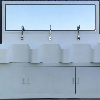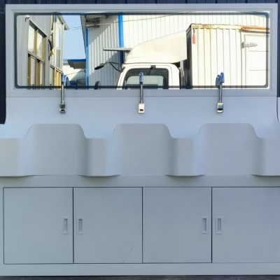 可按照客户的要求选配出水:感应、膝控、脚控;高背板设备配有自动感应皂液器、 颈式水龙头、灯光镜子、选配烘手器 、热水器。低背板洗手池 配颈式水龙头、选配烘手器 、热水器。