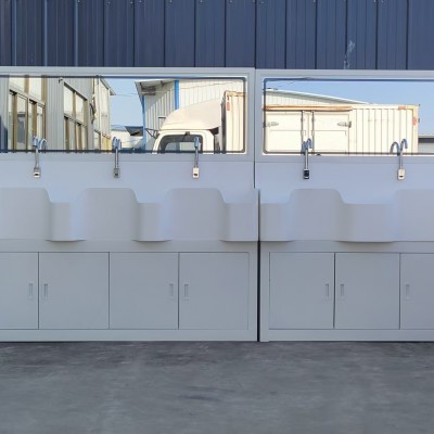 常用尺寸有单位洗手池、800*650*1800MM,二人位洗手池1500*650*1800MM,三人位洗手池 1800*650*1800MM 低背板1300MM