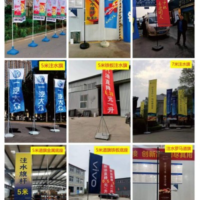 • 注水旗出租:提供 5 米注水旗杆租赁服务。3 米注水旗底座可注水 12 斤左右,底座轻巧,便于更换放置地点,配合可随风旋转的回旋头,可抗七级大风。旗杆高度可随意调节,横杆高度也能随旗面大小灵活调整,拆卸、更换方便快捷。