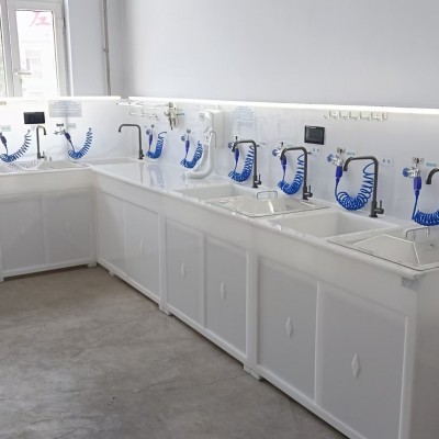 进水和酶洗槽、消毒槽下水均装有ABS球阀,对水的流量和流速进行自由调控;